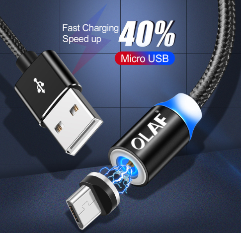 2019 OLAF 1M Magnetic Micro USB Cable LED Magnet Charger Cord For Samsung S4 S5 S6 S7 Edge Magnetic Cable Micro USB Charging Cables
