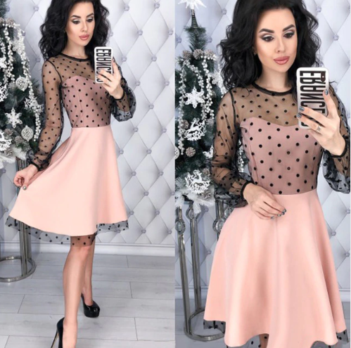 2019 Women Vintage Lace Patchwork A-line Party Dress Long Sleeve O neck Solid Mini Dress Spring New Fashion Chic Women Dress
