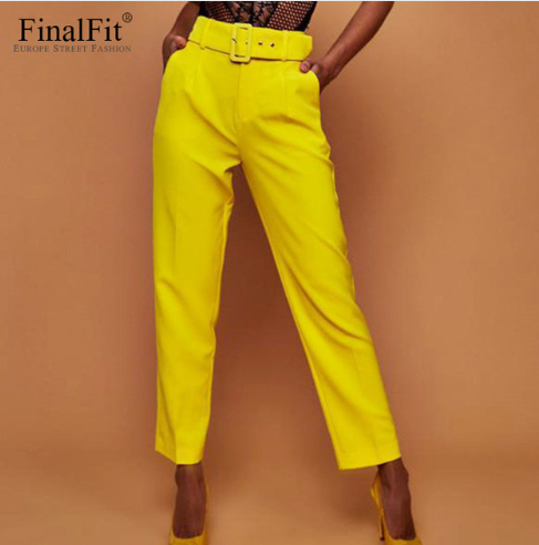 Casual Pants High Waist Autumn Belted Straight Leg Slacks Office Lady Suit Pants Women Trousers