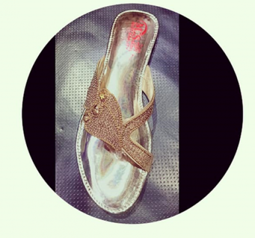 Feel pretty and classy golden shoes that are full with embroidered a sharp point just covering the toes. This Women's Fancy Sandal Golden Color With Golden Stone Work are available with very affordable price. This shoe perfect suit of different function and this is very comfortable top wear and give you long last service life. Buy online with free home delivery.